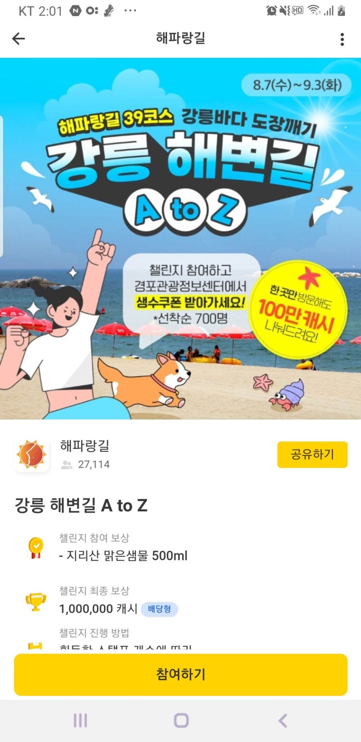 7월 중순에 있었던 캐시워크 해파랑길 첼린지 포스팅을 지금!! 올리는 이유는 [일이 많아서 올리는걸 까먹...