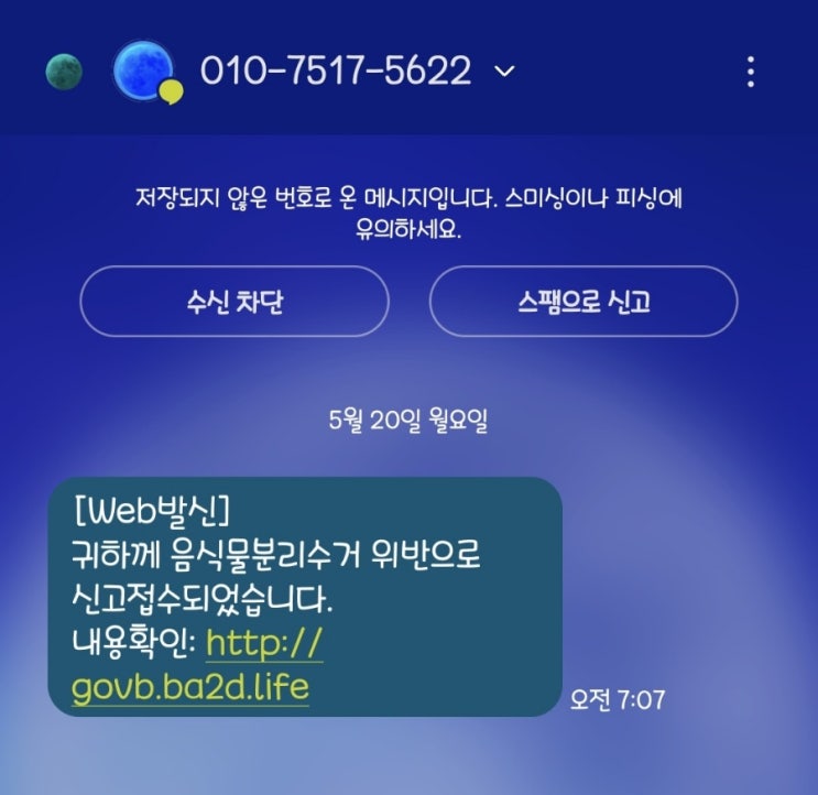 아침에 문자올 곳이 없는데, 한통의 문자가 왔네요.. "귀하께 음식물분리수거 위반으로 신고접수되었...