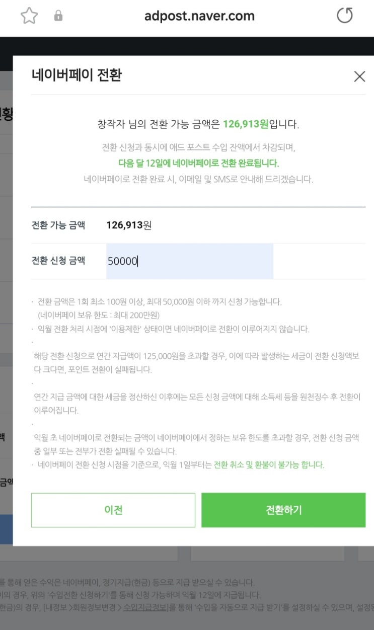 애드포스트 광고수익(feat. 다음 달 12일, 네이버페이로 지급)