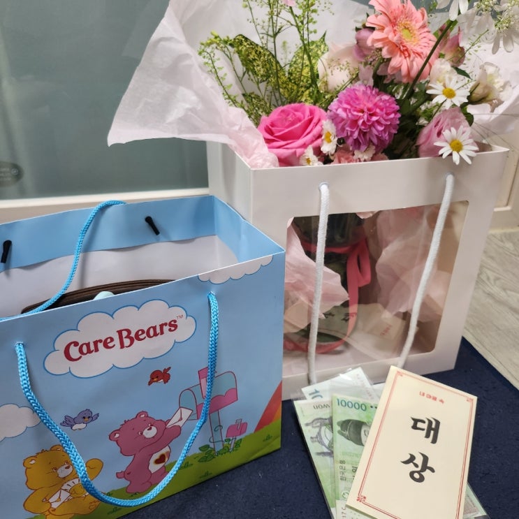 조부모님, 부모님 선물 준비 할머니가 좋아하는 꽃 준비하고 밑에 화병도 같이 있어서 꽃 안 시들고 따로 ...