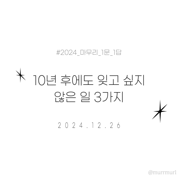[241226] 10년후에도 잊고 싶지 않은 일 3가지