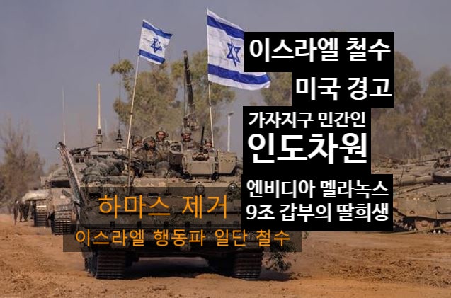 이스라엘 철수 엔비디아 멜라녹스 합병 CEO 9조 갑부의 딸 희생 당한 노바 음악 축제에 침 공한 하마스 제거에 나선 행동파 네타냐후에 국제적 경 고