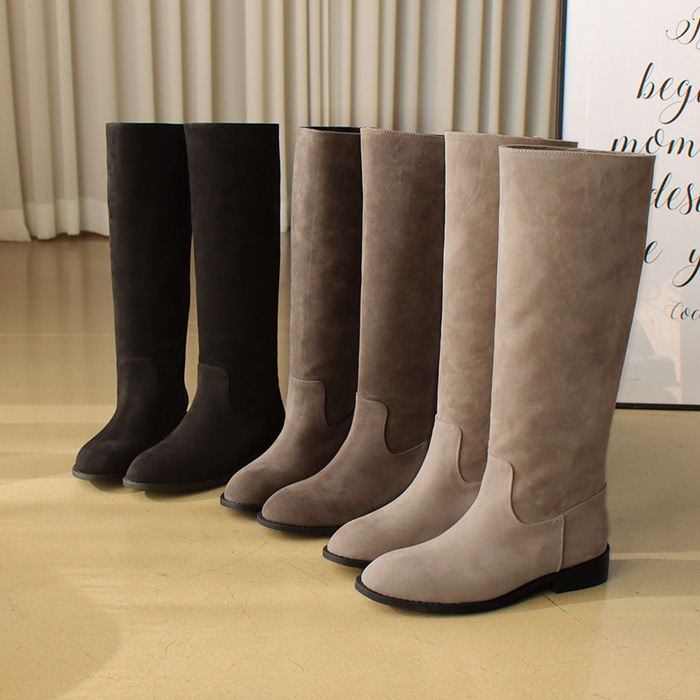 [바닐라슈] 듀얼린 베이직 스웨이드 스판 롱부츠(6cm)