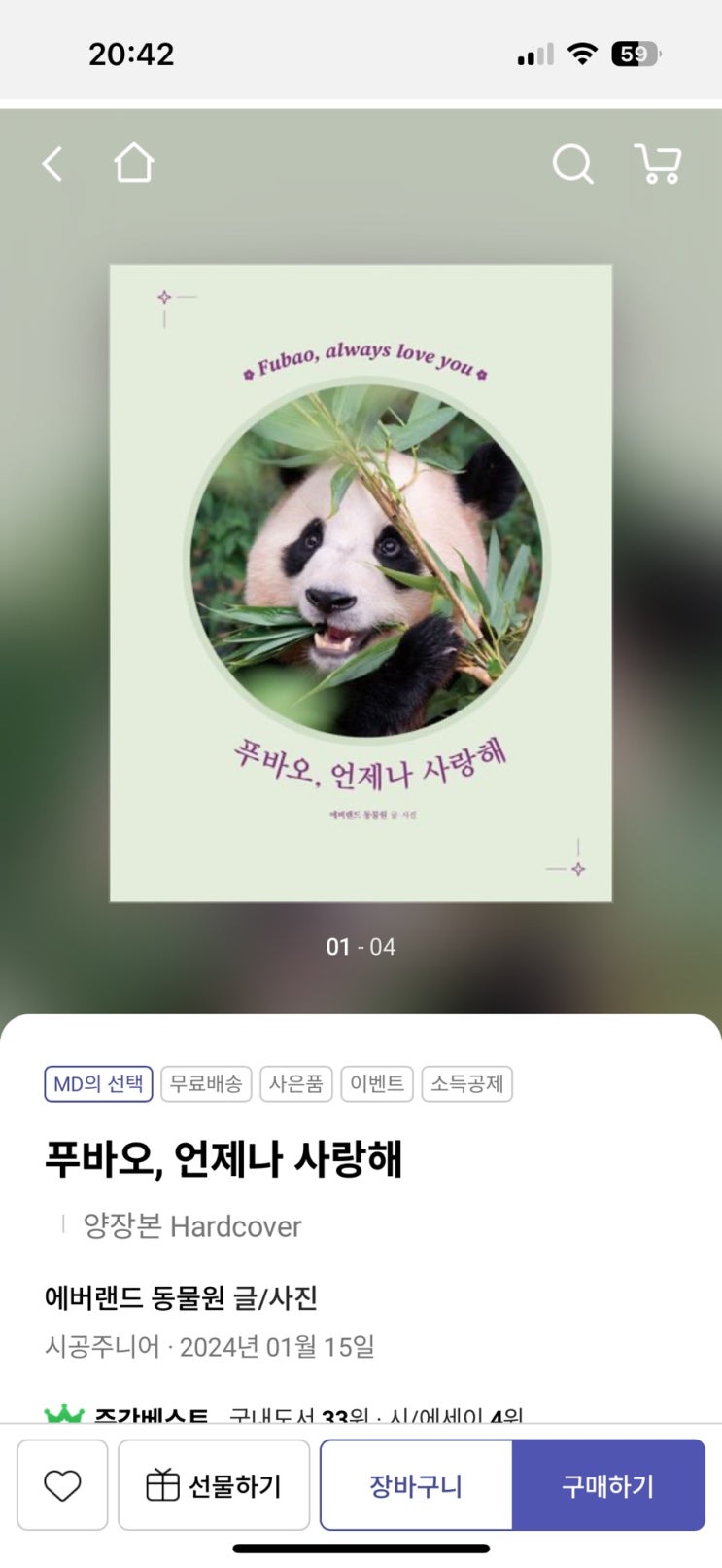 푸바오 책이 이제 벌써 4권이 있네요. '아기 판다 푸바오'  저자:강철원 사육사 '푸바오,매일 매일 행...