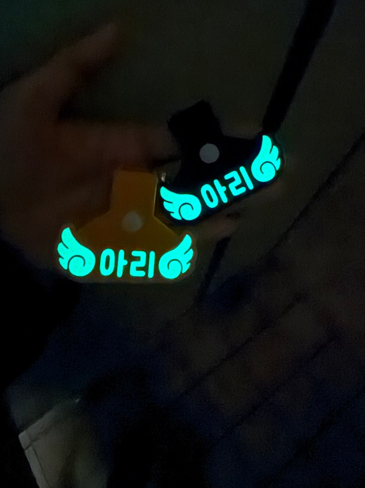 안녕하세요! 오늘 소개해 드릴 제품은 반려견 야광 네임택입니다:) 중형 사이즈로 노랑색과 검정색 두 가지...
