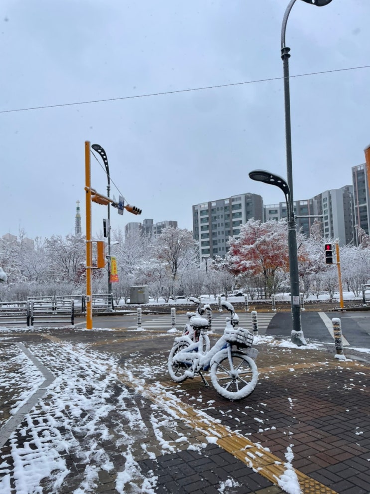 주중에 왔던 첫눈! 눈이 너무 많이 와서 삿포로 온줄알았다..! 하루종일 계속계속 내리더라...! 등원이 급 ...