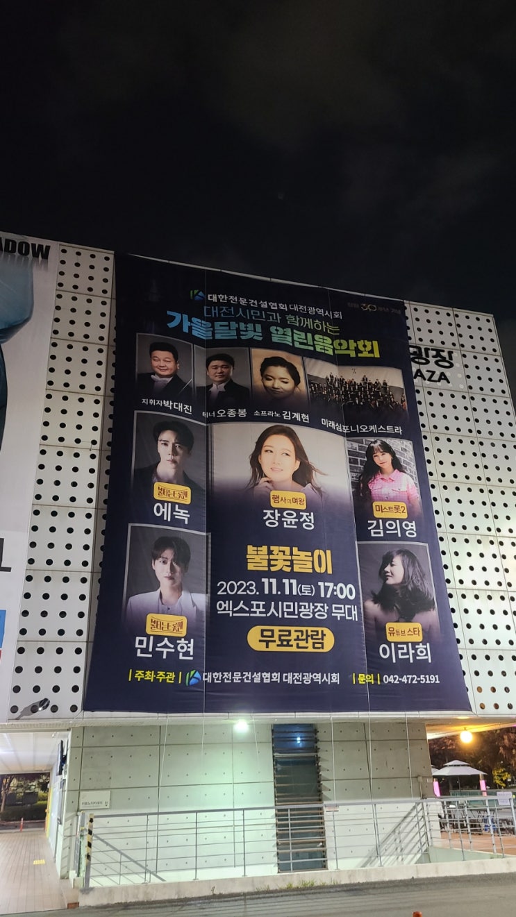 대전시민과 함께하는 가을달빛 열린음악회 2023/11/11(토) 오후 5시 엑스포 시민광장무대 무료관람 ^^ ❤️ 장윤정 ,민수현,이라희,김의영,에녹,~ 빈센트발 ^^