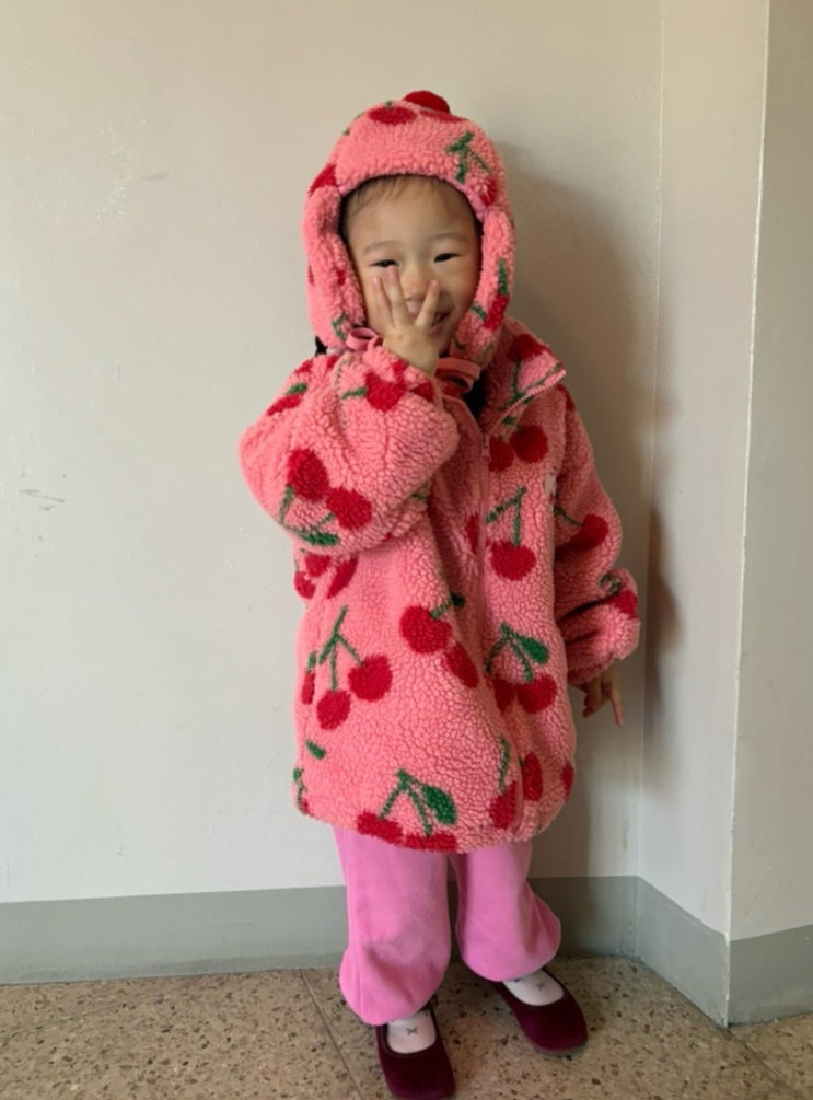 오즈키즈 치치 뽀글이 핑크 110사이즈 세돌아기 외투 등원룩 채채 친구네가 입은 뽀글이 보고 반해서 바로 ...