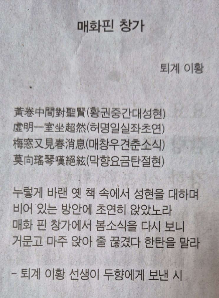 매화핀 창가(퇴계 이황) 사랑노래구나