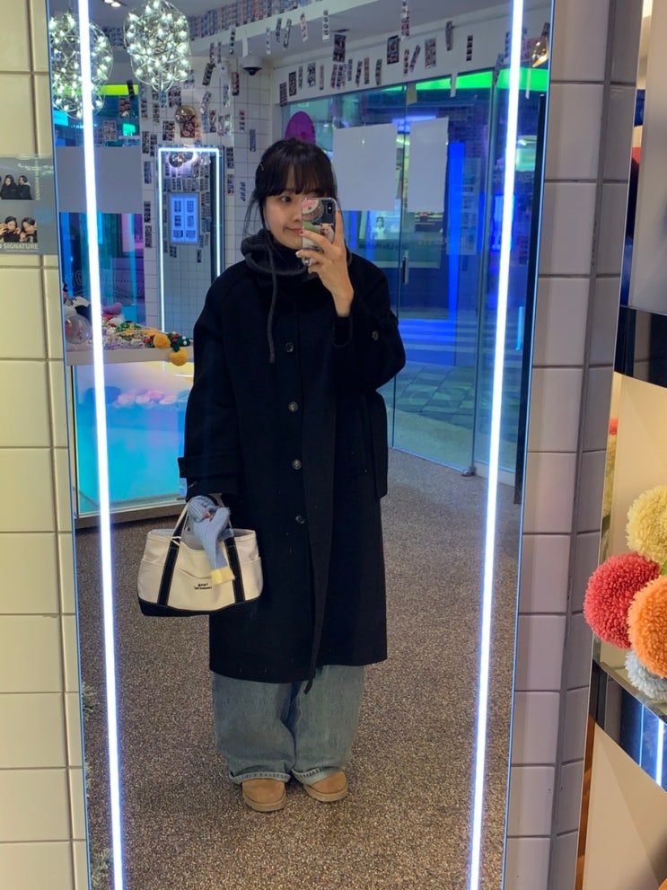 지그재그 블랙 롱코트 코디 , 퀄리티 좋은 미니뽕 내돈내산