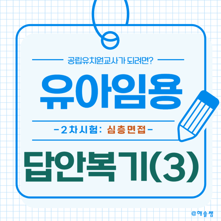 안녕하세요 해솔쌤이에요. 유아임용 블로그를 운영하면서 유아임용 응시생 선생님들께 질문 받은 내용들을 ...