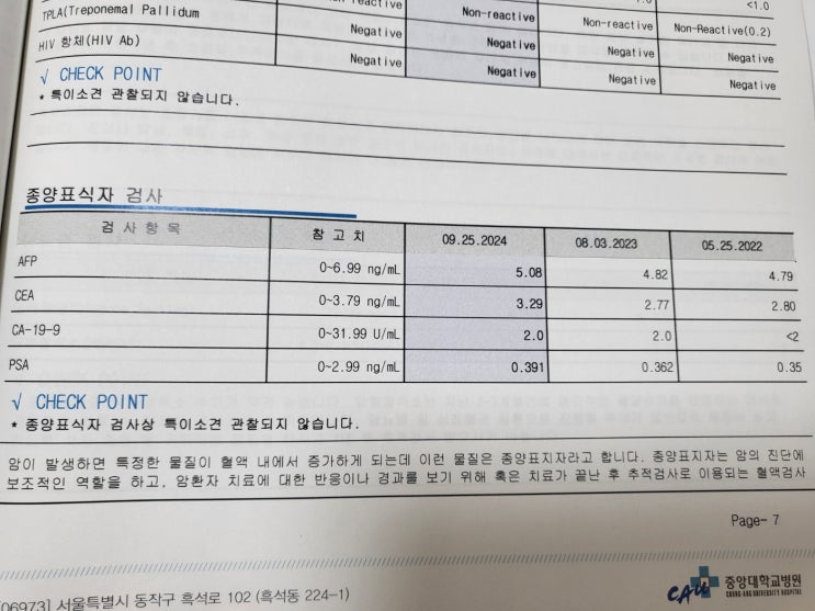 종양표지자 검사 수치 종류 및 정확도 최근에 건강검진을 받았습니다 3주 정도뒤에 결과지를 받아보았는데...