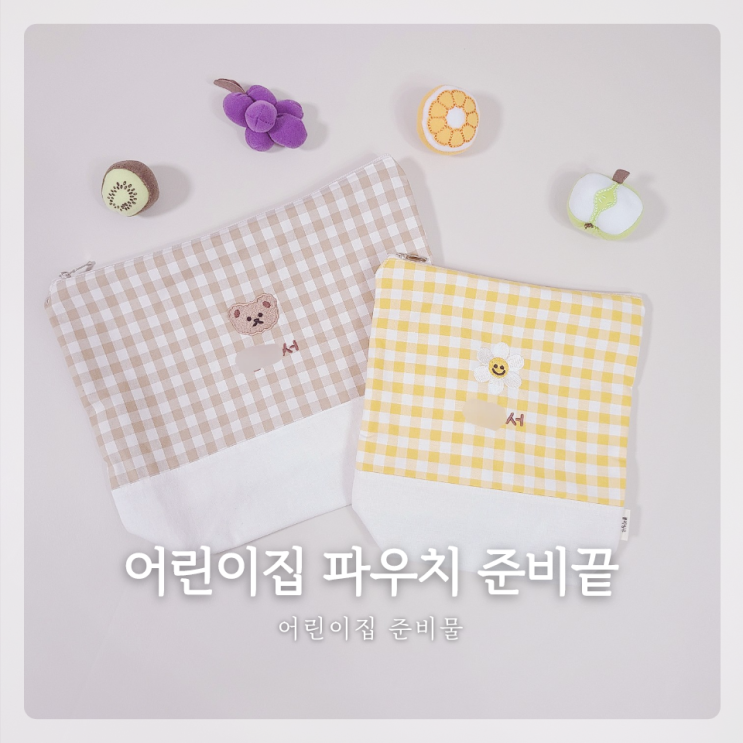 간절기감기 어린이집 유치원 이니셜자수 방수약파우치 준비하세요.