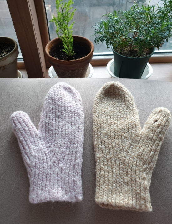 핸드워머를 뜨고도 남은 실로 손모아 장갑을 만들어 보았다. 조이코바늘님의 스노우 손모아 장갑 터치 핑거...