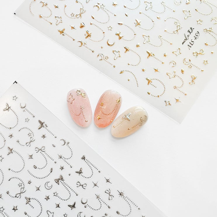 [대전네일재료/대전네일아이] 2024 리본 별 달 나비 체인 메탈 네일스티커 (MS459)