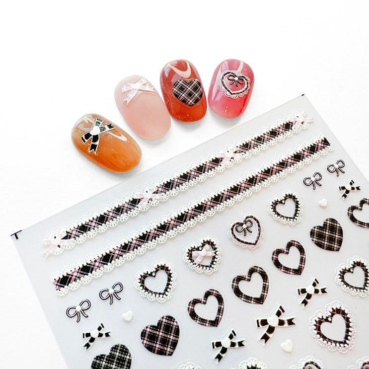 [대전네일재료/대전네일아이] 2024 레이스 발레코어 리본 하트 체크 엠보 네일스티커 (TO3515)