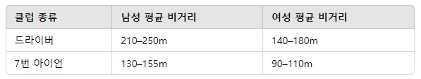 남성 여성 7번 아이언 드라이버 평균 비거리 알아보기