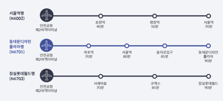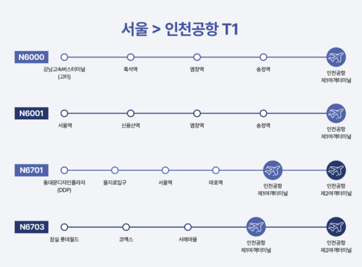 인천공항->서울 경기 도착 심야버스 노선도 시간표 요금 타는 곳 운행정보