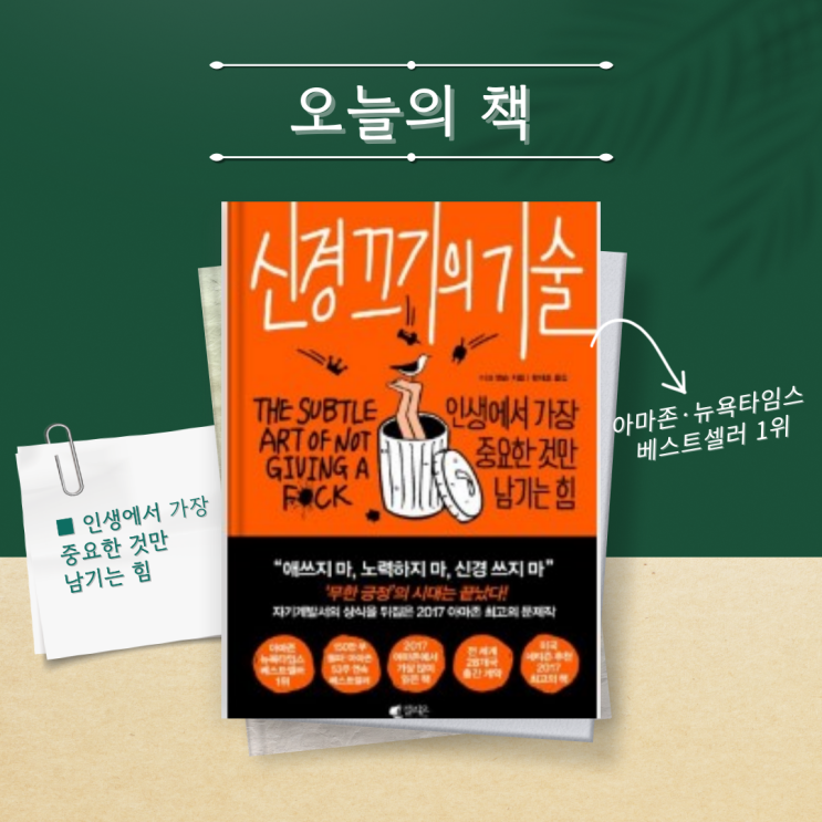신경 끄기의 기술-마크 맨슨 안녕하세요 예서 특별시 구짱입니다. 오늘 소개할 책은 내 삶에서 가장 중요한...