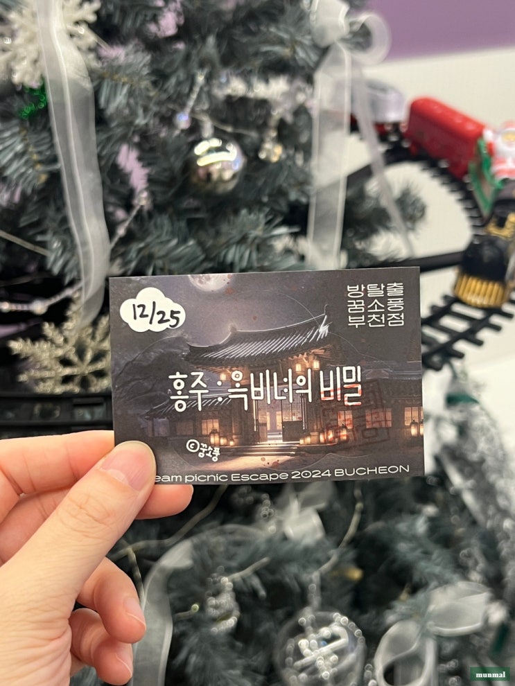 오늘은 크리스마스를 기념해 다녀왔던 부천 방탈출 꿈소풍 홍주 : 옥비녀의 비밀 리뷰! 부천에서 방탈출 하...