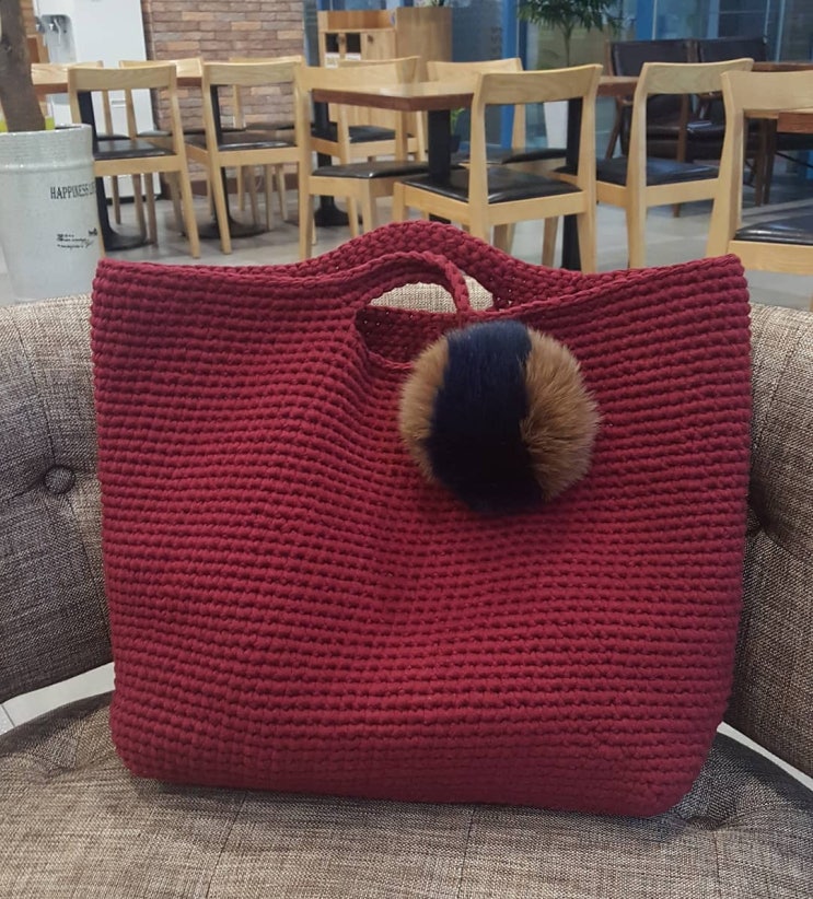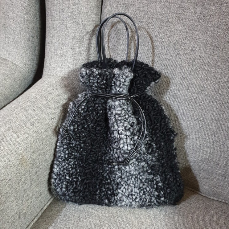 뽀글이 토드백 뜨개질 도안 패션부클레 실 3롤로 대바늘뜨기로 만든 가방입니다. (패션부클레 실은 리네아...