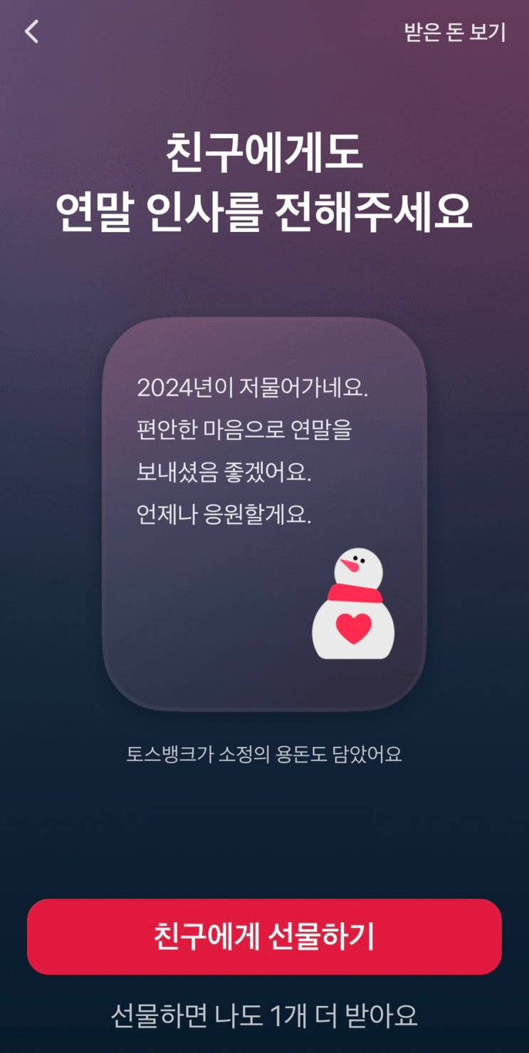토스 뱅크 눈사람 열고 용돈 받기 이벤트
