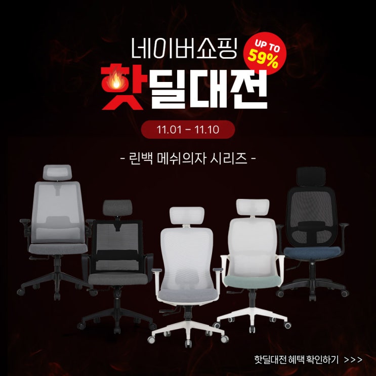 [네이버쇼핑 핫딜대전] 린백 사무실의자 메쉬의자 시리즈 모아보기|Up to ~59%