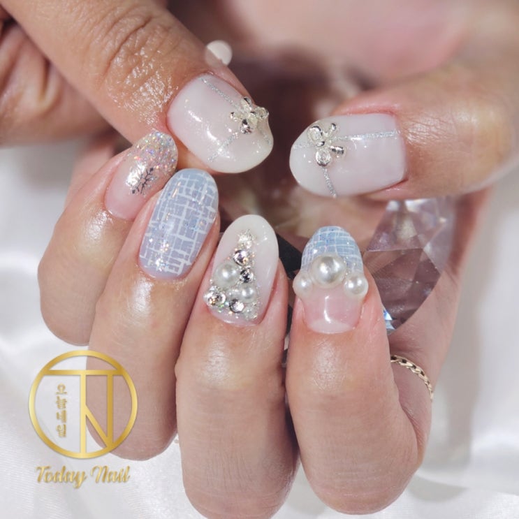차가운 실버와 레터링 포인트 겨울 셀프 맞춤 수제네일팁
