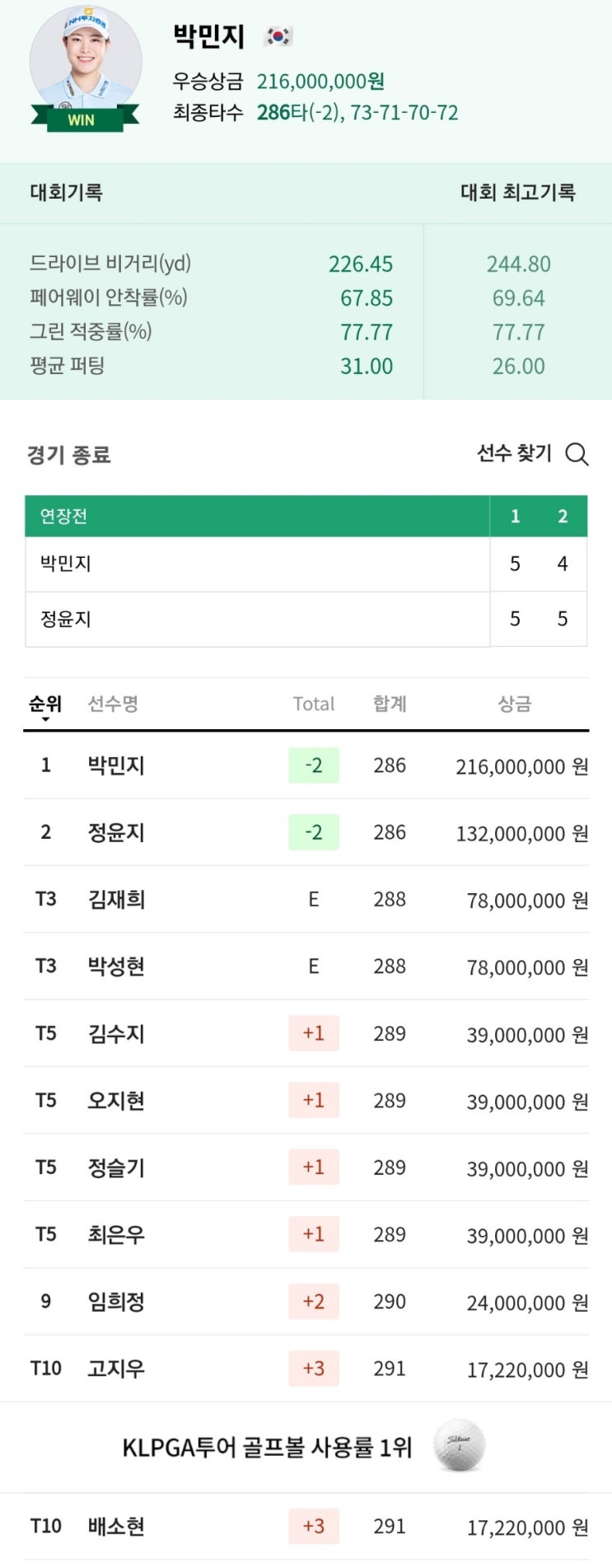 이번에도 새로운 우승자의 탄생!! 제가 픽했던 김수지, 한진선, 고지우, 이예원 선수의 성적도 나쁘지 않았...