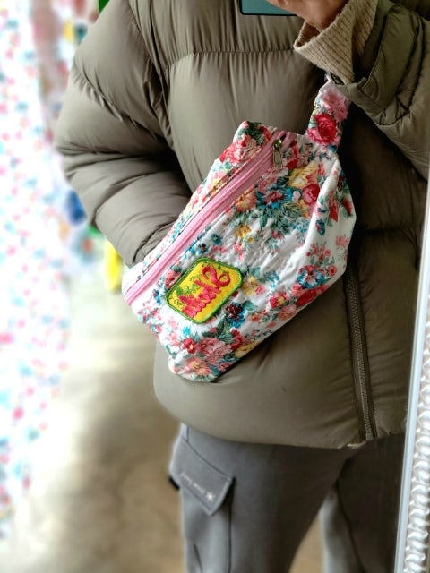 여행을 떠나시는 수강생님 첫 번째 준비물 슬링백 만들기 해지데님 퀼팅원단과 상큼한 지퍼가 찰뗙 잘 어울...