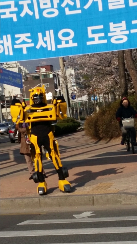 도봉구에 나타난 범블비. 달리는 차안이라 파파라치 컷이 되어 버렸지만, 그세 포즈 취해주신 ㅋ 자세히 보...