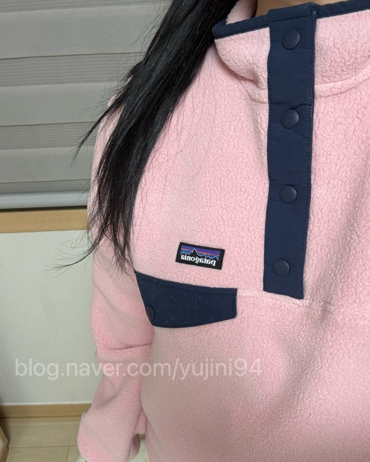 파타고니아 키즈 라이트웨이트 신칠라 스냅티 Mallow Pink 착샷 | 파타고니아 핑크 신칠라 사이즈팁 비교