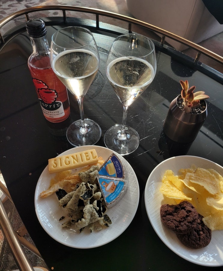 시그니엘 서울 라운지 ‘살롱 드 시그니엘’ 솔직 후기 (스파클링 와인 샴페인 무제한 / 감자칩 / 시그니엘 레터링 쿠키 / 김부각 / 이용시간)