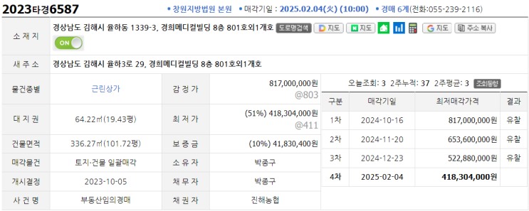 [물건가치분석] 2023타경6587, 2023타경7573 경상남도 김해시 율하동 1339-3, 경희메디컬빌딩 701, 801호