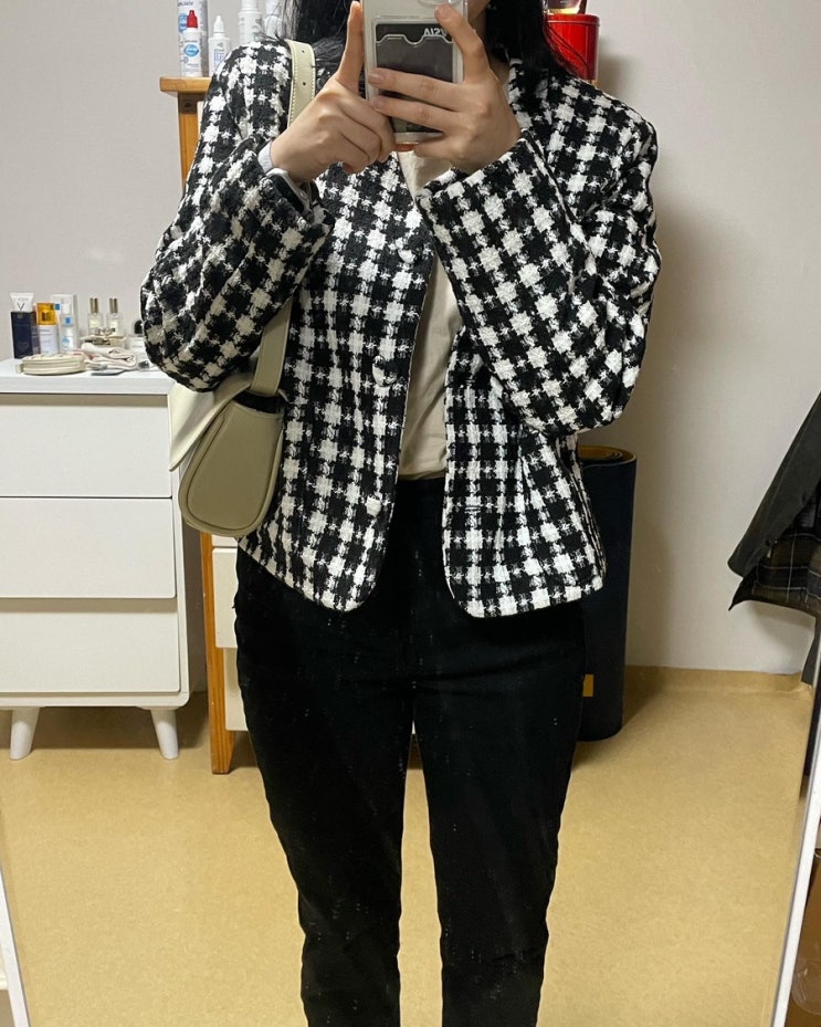 드디어 거울을 내방으로 옮겼다. 기념으로 오오티디 열심히 찍기. 내가 좋아하는 트위드 자켓. 하트 단추가...