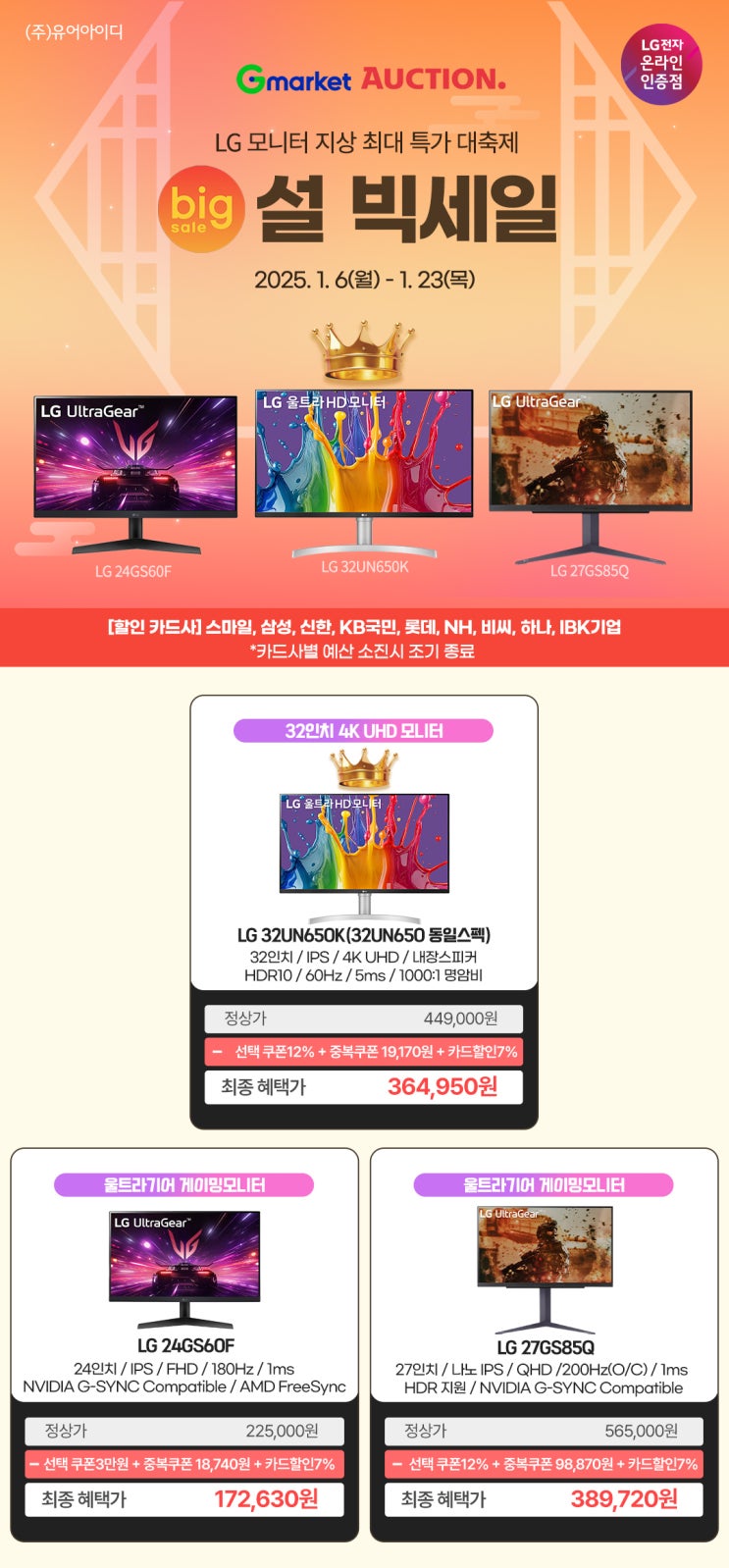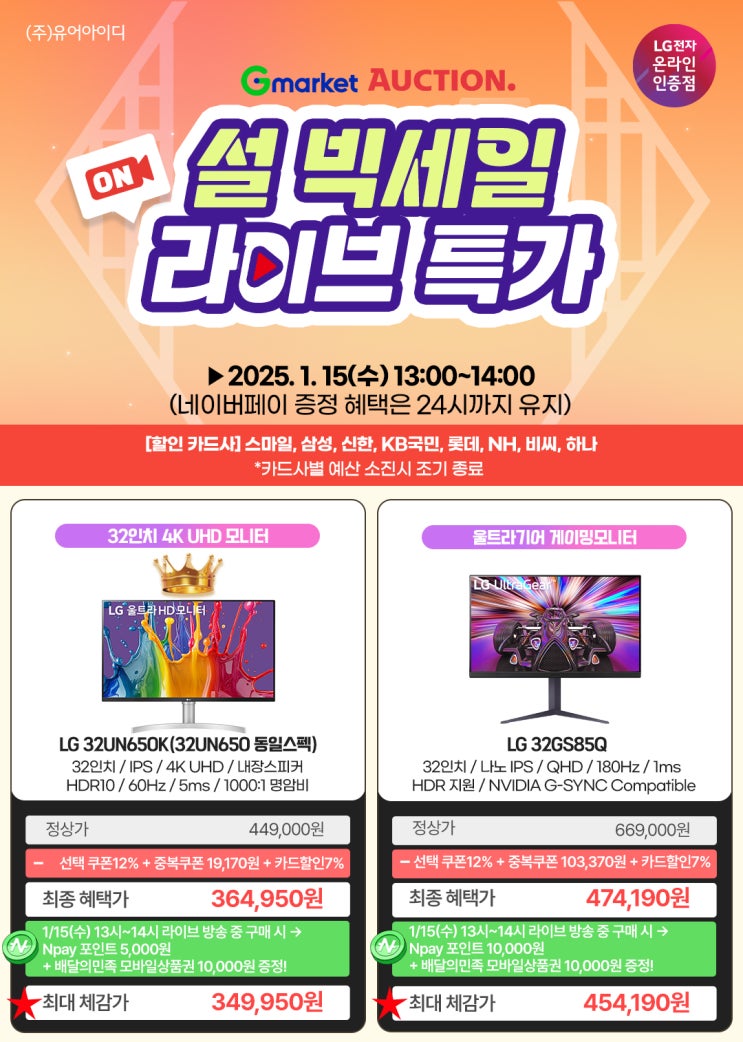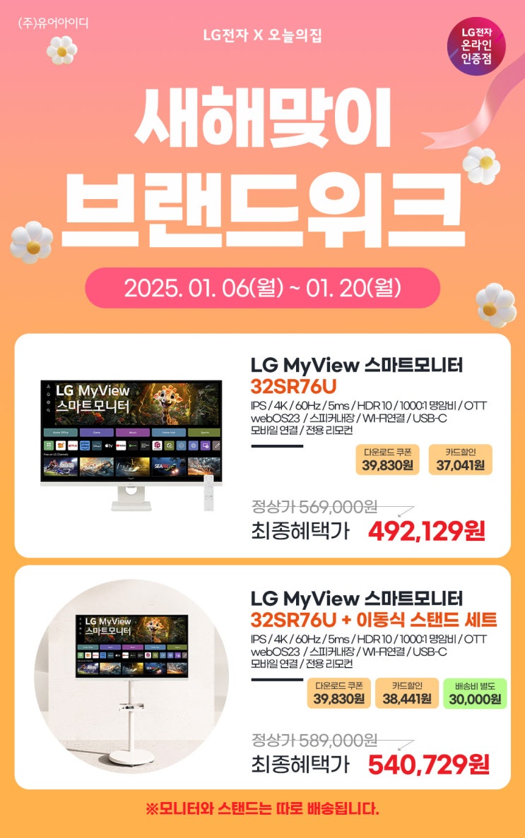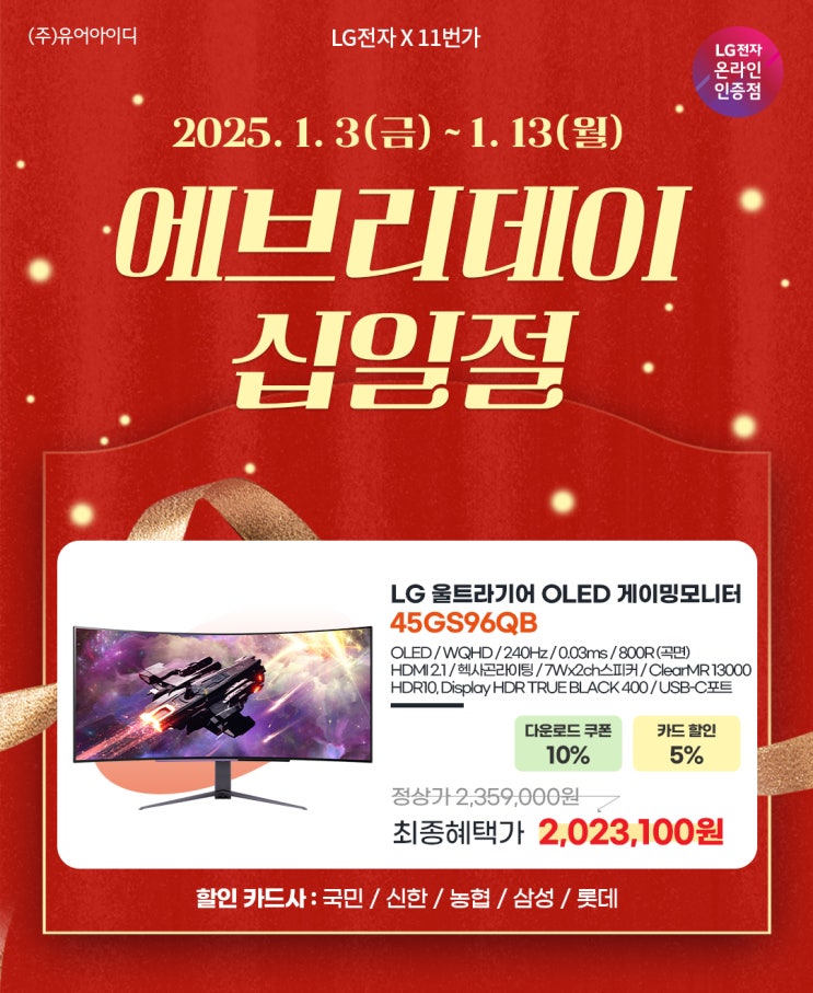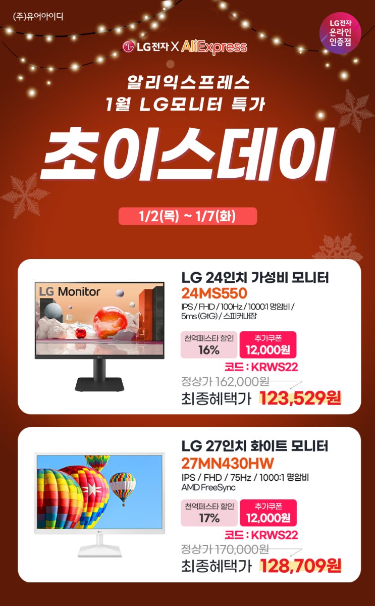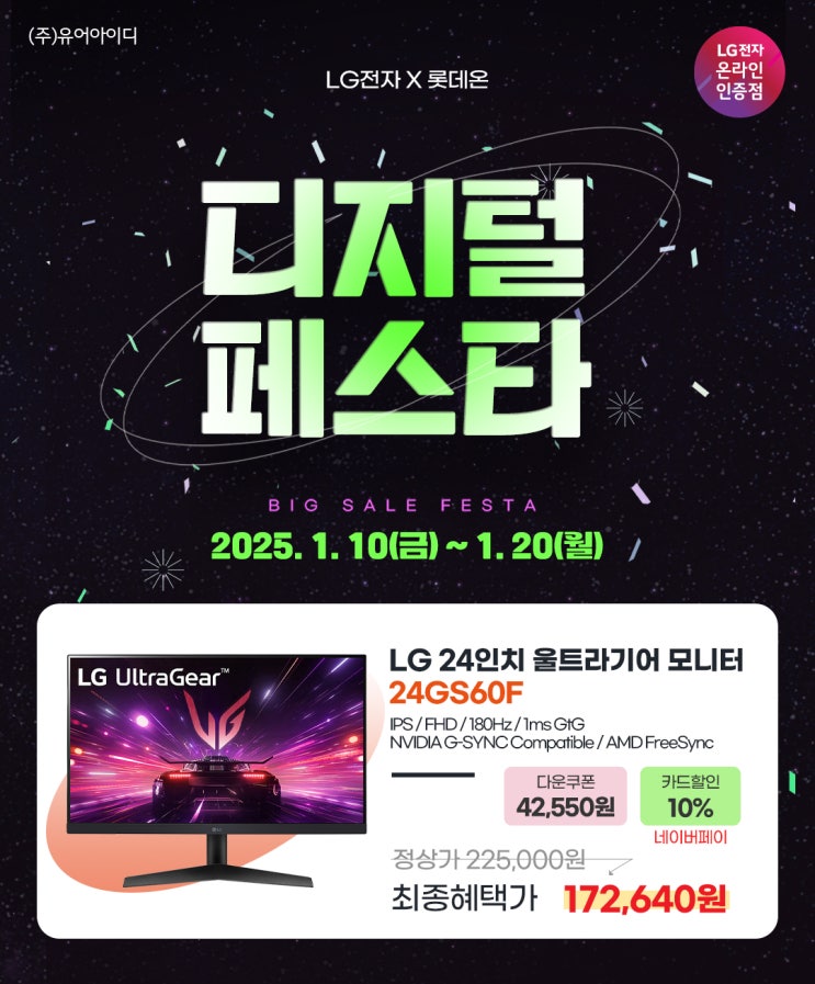 안녕하세요, LG전자 온라인 인증점 유어아이디 입니다. 1/16(목)~1/31(금) 까지 네이버 쇼핑 LG모니터 ...