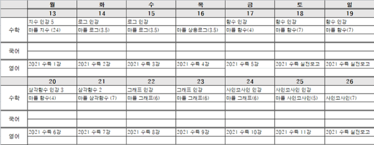 [교육에 대한 생각] 중, 고등 방학 계획표 만들기 / 엑셀 화일 공유