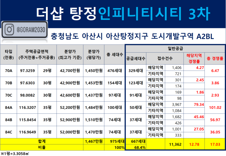 더샵 탕정인피니티시티 3차(충남 아산시 탕정면 갈산리 260-1)의 청약경쟁률에 대해 알아보겠습니다. ※충...