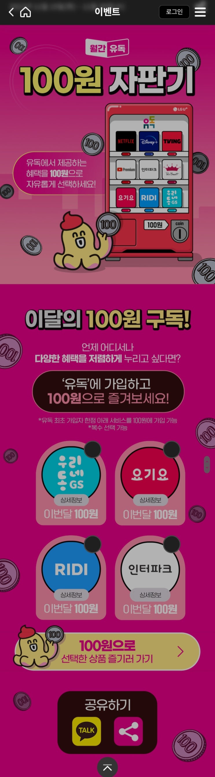 유플러스 100원 자판기. 유독!