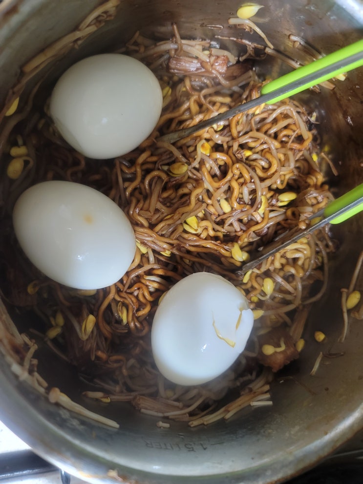 콩나물과 팽이버섯 계란3개 넣은 다이어트 짜파게티! 짜파게티는 아니고 풀무원 파기름?맛 이다 한개로 부...