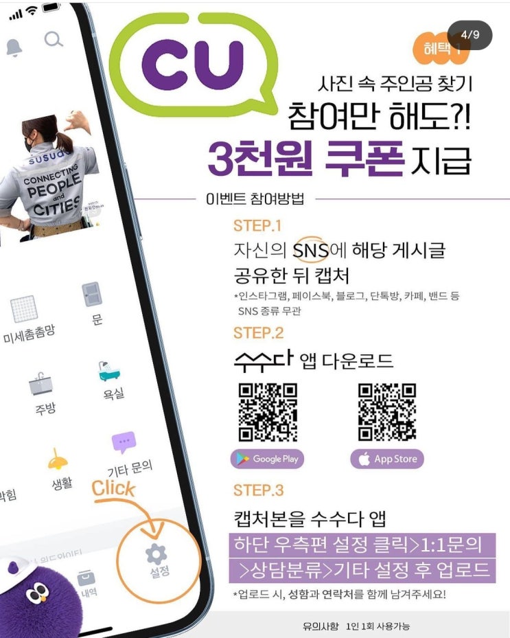 수수다! 참여만 해도 CU3천원 전원 증정