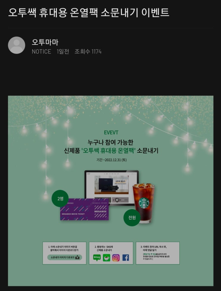 오투쌕 휴대용 온열팩 소문내기 이벤트