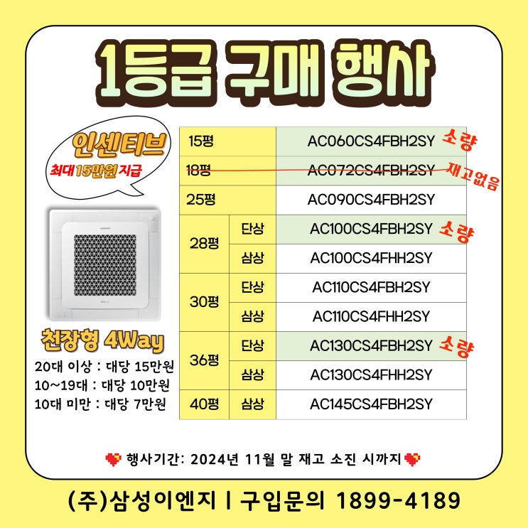 [할인행사] 삼성시스템에어컨 삼성무풍냉방 1way에어컨 최저도매가,소매가 구입방법! 대량구입 찬스!