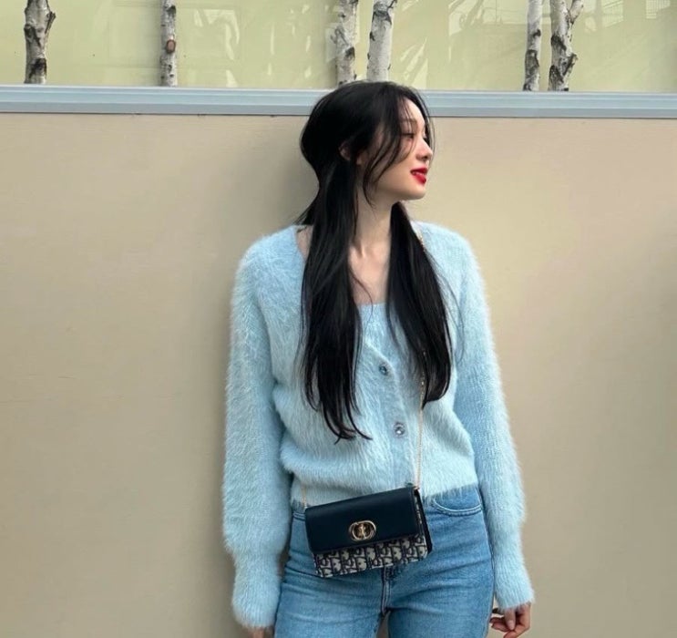 쿨톤이 확실한 그녀 김연아의 이번 레드 립 블루 앙고라 가디건에 디올 체인 크로스백으로 코디한 룩 이번 ...
