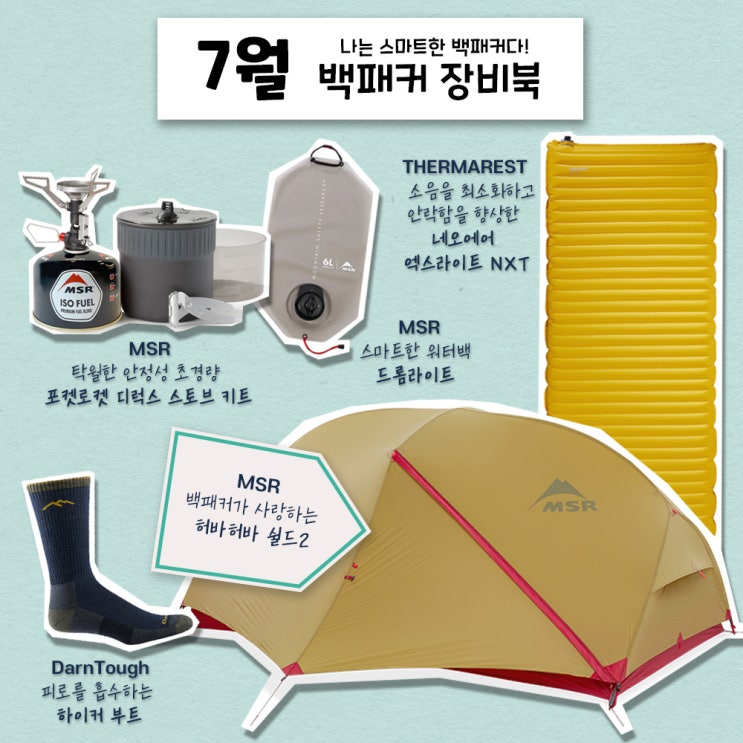 7월 나는 스마트한 백패커다? 백패커 장비북 ? MSR 백패커가 사랑하는 #MSR #허바허바쉴드2 ?...