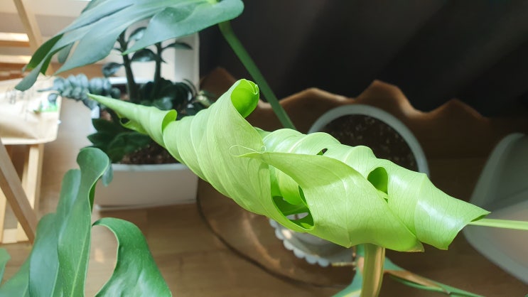 몬스테라는 넓고 시원하게 펼쳐진 잎이 매력적인 식물로 독특한 찢어진 잎 모양으로 인해 '스위스 치...