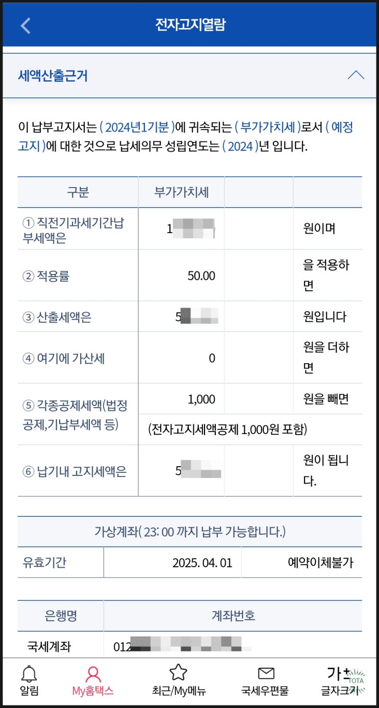 국민비서에서 문자메시지가 도착했다.. 부가가치세 고지서가 발부되었다고 한다. 4월에? 지난 1월에 부가가...