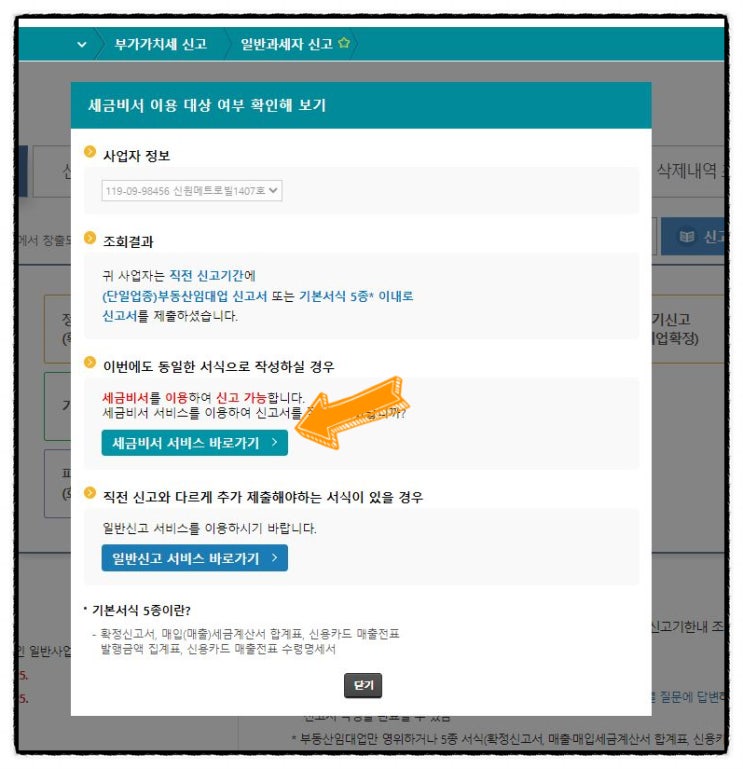 홈택스 세금비서 직전기 동일 부가가치세 신고 방법