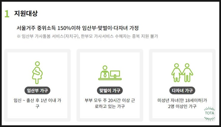 집안일 도움 서울형 가사서비스 임산부 맞벌이 다자녀 가정방문 지원