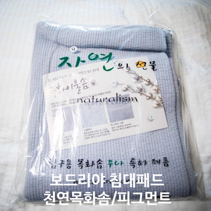 보드리야 목화솜 침대 밴딩패드 얼마전에 신혼때부터 쓰던 침대 매트리스를 버리고 가벼운 패드를 놓고 사...